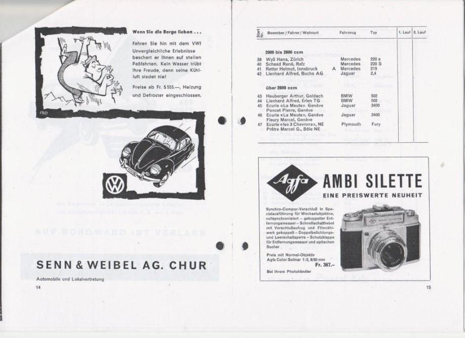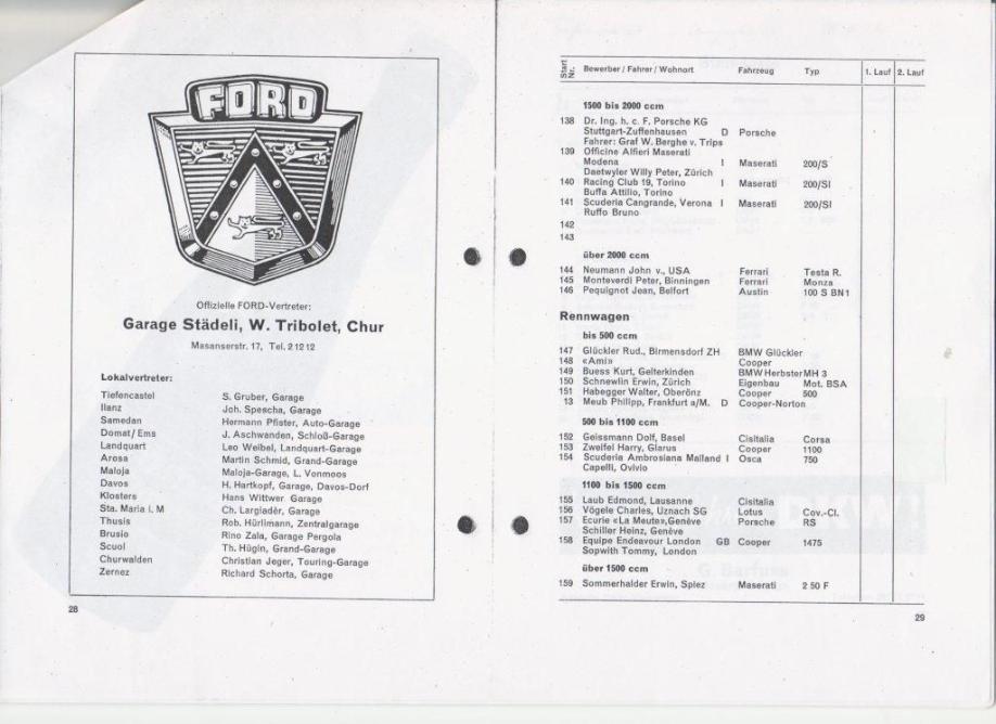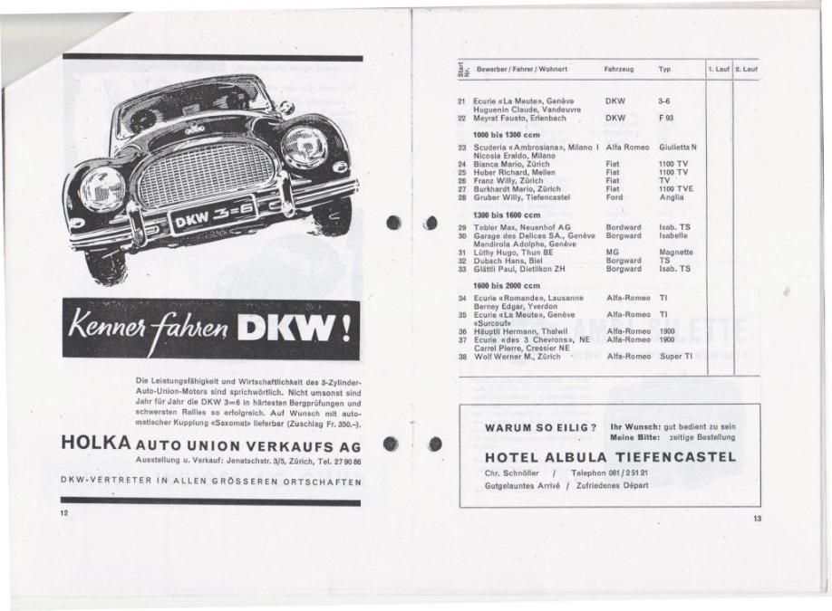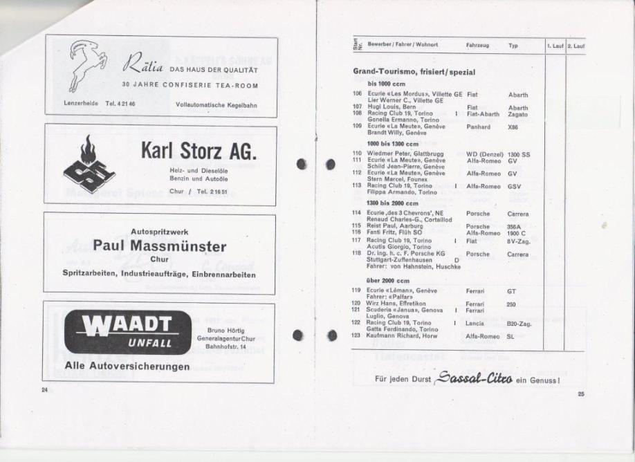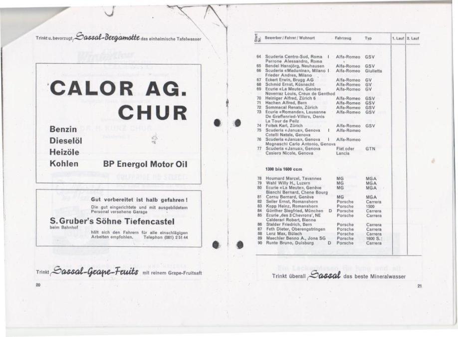 Der spannende grosse Kampf um die europäische Bergmeisterschaft zwischen dem Porsche vom berühmten Rennleiter Huschke von Hanstein (ein RS Bergspyder der jedesmal beim Schalten eine riesige Stichflamme aus dem mittelrohrigen Auspuff stiess), dem Borgward RS von Hans Herrmann (der schon damals mythenhafte Ferrari mit Ludovico Scarfiotti) und dem Maserati 200/S von Willy Peter Dätwyler, der die Europameisterschaft schliesslich auch gewann, war ein unvergessliches Erlebnis.