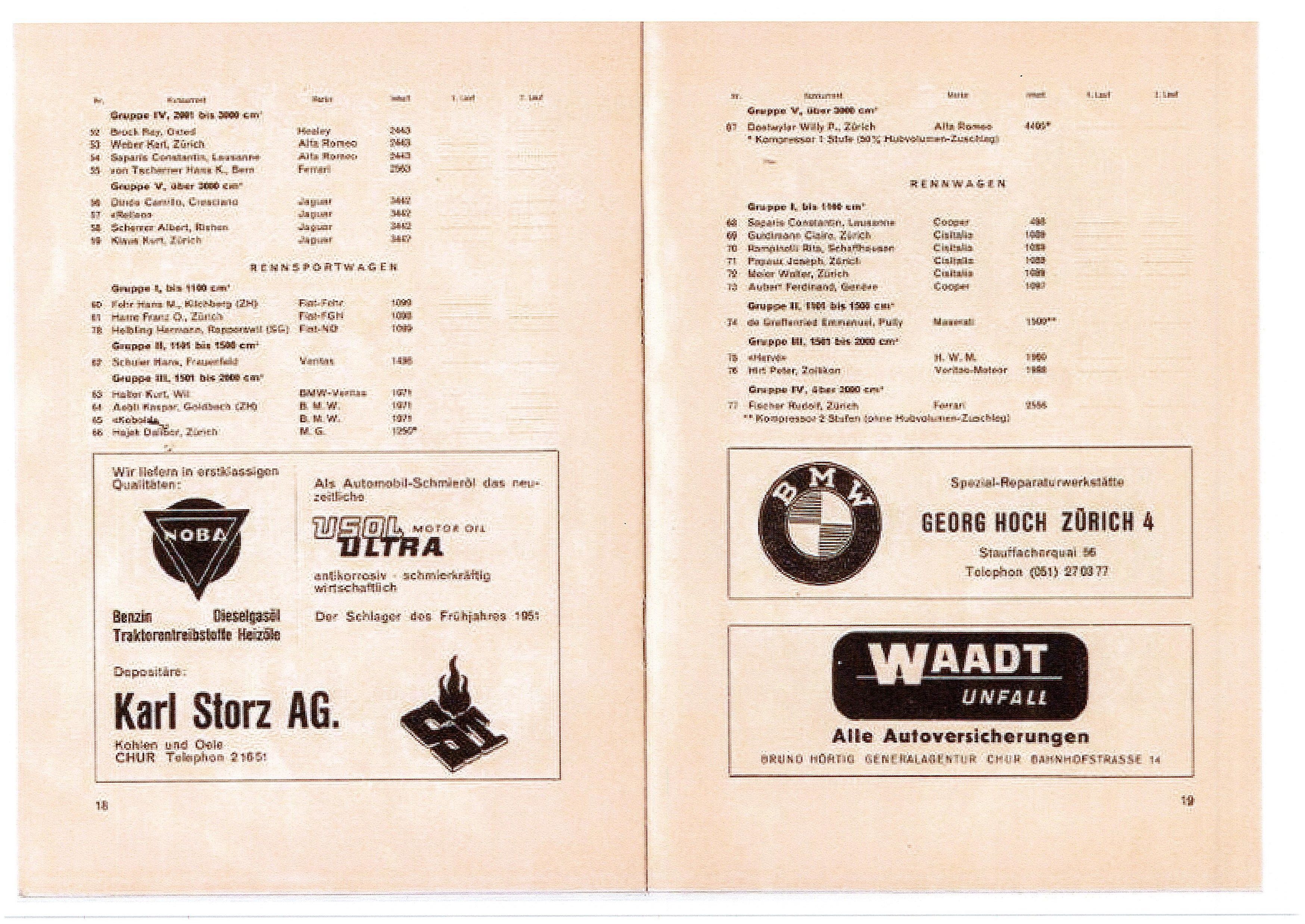 Rund 80 Fahrzeuge von Alfa Romeo, Lancia, Cisitalia, BMW Veritas, Porsche 356, MG, Jaguar 120 und der heute unbekannte Jowett-Jupiter, betasteten wir ehrfürchtig anlässlich der Wagenabnahme beim Hotel Kurhaus.