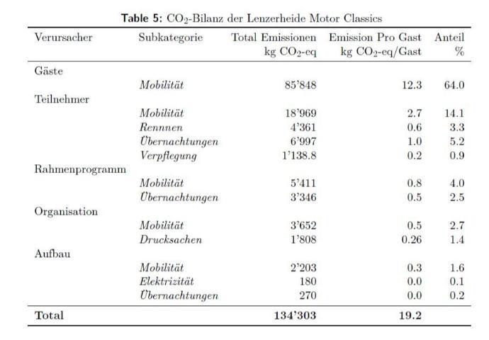 In die Berechnungen der CO2-Bilanz flossen alle CO2-Emissionen ein, die der Event verursacht. Der Anteil der Rennfahrzeuge beträgt dabei 3.3%.